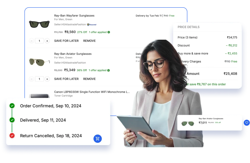 Remove purchase friction with seamless cart and checkout orchestration, supported by automated workflows and robust integrations.