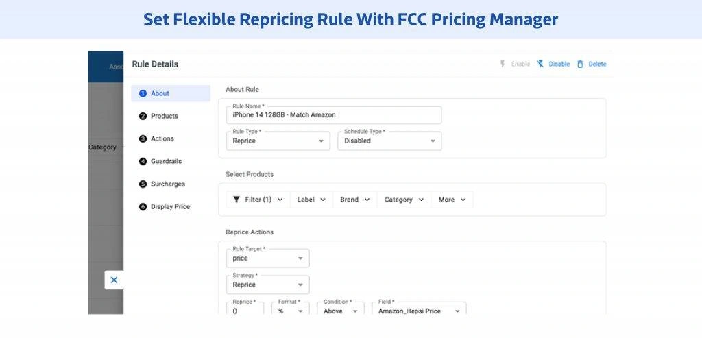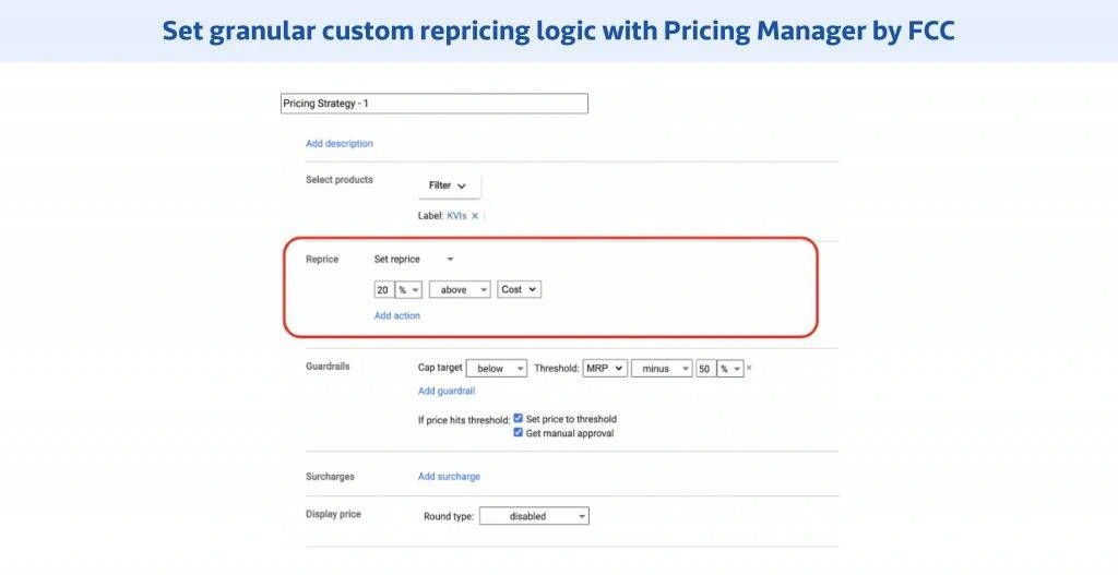 The FCC pricing platform offers complete flexibility when it comes to setting repricing logic.