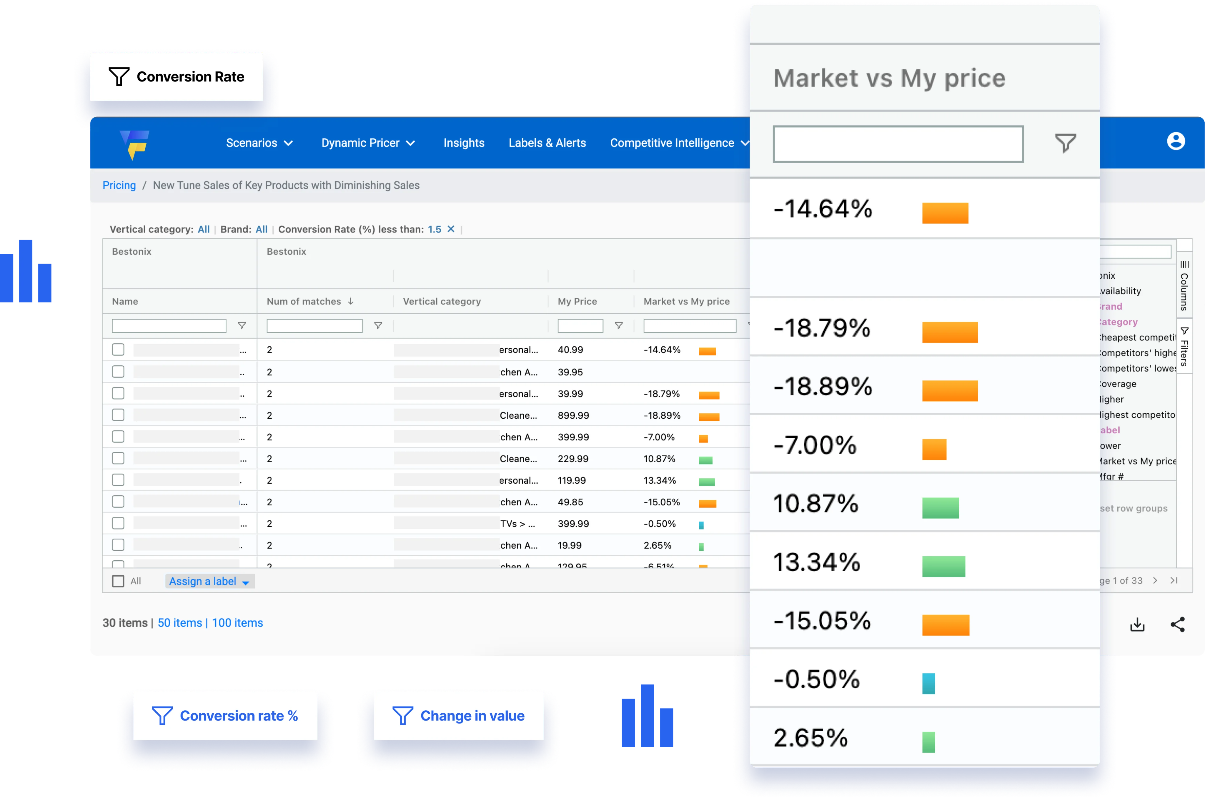 Gain reliable and real-time competitive intelligence for all your competitors at the SKU level, and account for market dynamics in your pricing approaches