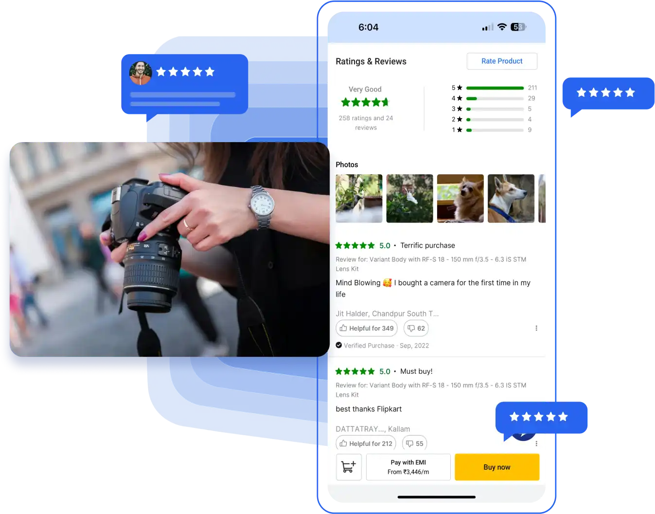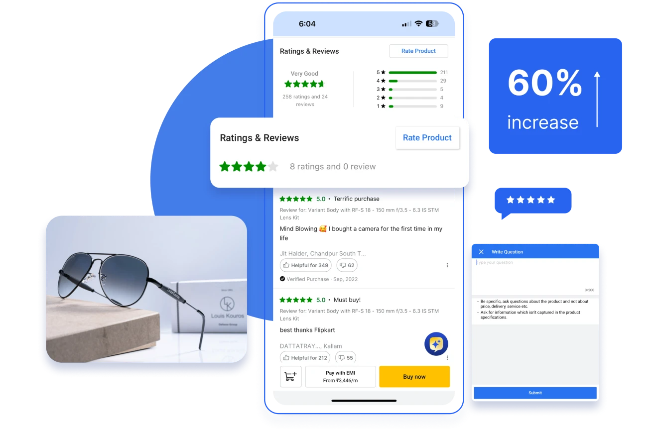FCC's rating and review software boosts user trust through authentic customer reviews, maximizes conversions by displaying ratings across key product pages, and personalizes customer outreach to gather text, image, and video reviews.